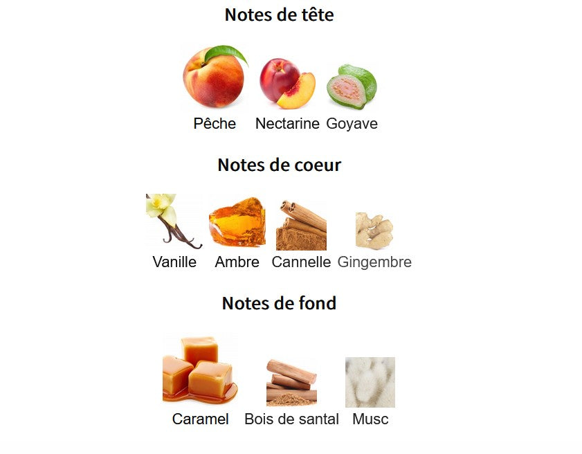 Peach Velvet is a feminine, joyful, and deliciously gourmand fragrance. It blends the juicy freshness of peach and guava with a vanilla and spicy heart, finishing with a sweet and musky base. A true olfactory caress, at once luminous, warm, and irresistible .