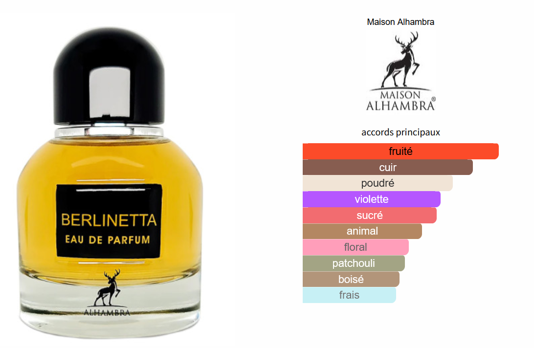 Alhambra Berlinetta House is a perfume fruity, floral and leathery Designed for both men and women, this unisex fragrance stands out for its elegance and sophistication, offering a unique and captivating olfactory experience.
