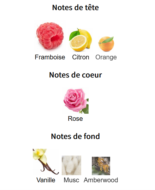 - Top Notes : Orange, Raspberry, Lemon