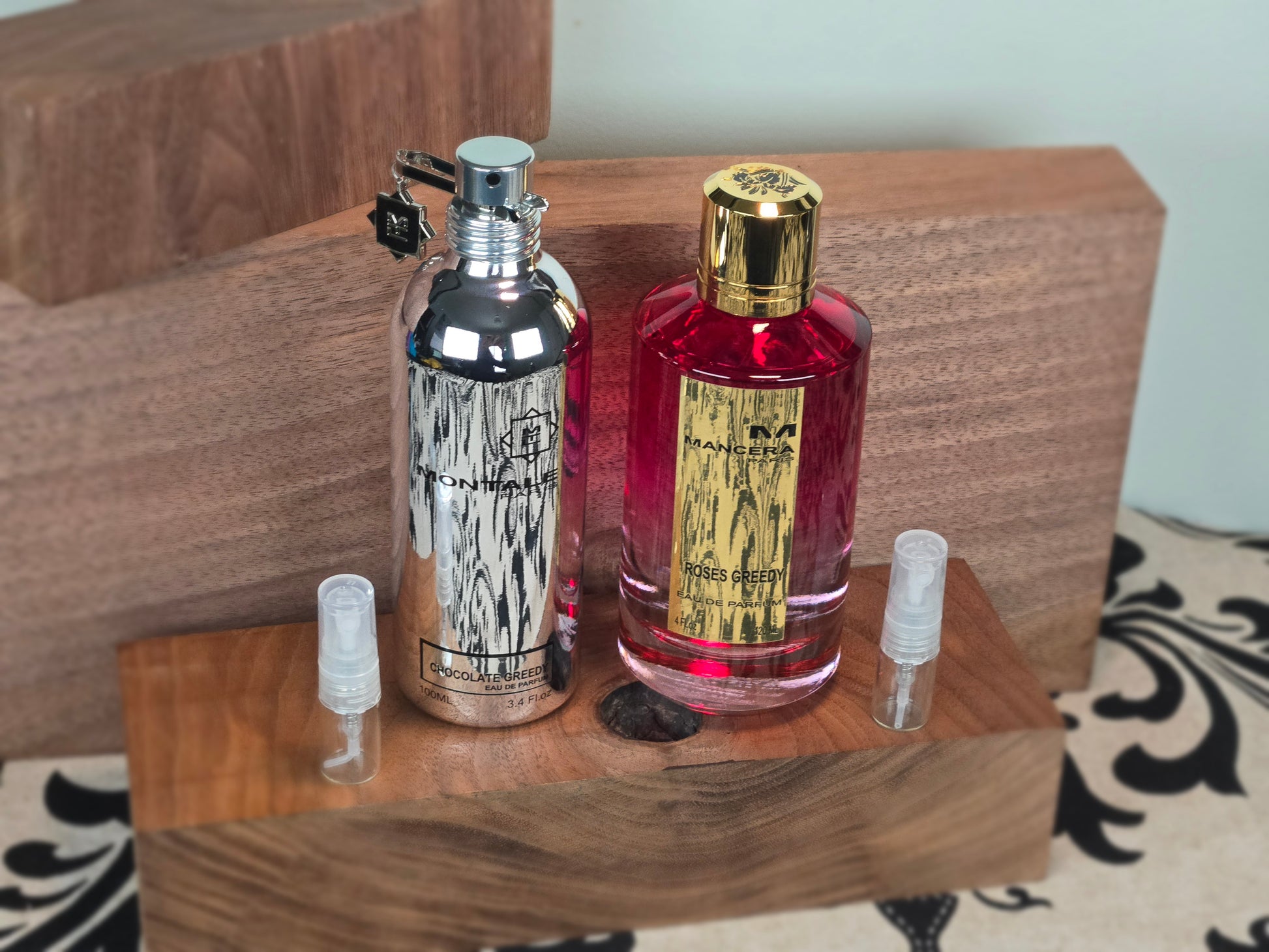 Combinaison Gourmande et Romantique - Montale Chocolate Greedy et Mancera Roses Greedy - Échantillon de Parfum 5ml/2ml