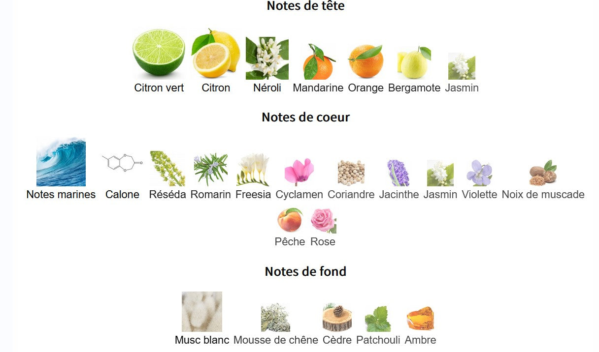 Le cœur de ce parfum est riche et complexe, mêlant des accords de notes marines, de calone, de reseda, de romarin, de freesia, de cyclamen, de coriandre, de jacinthe, de jasmin, de violette, de muscade, de pêche et de rose. Ces notes apportent une sophistication et une fraîcheur qui enveloppent la peau, créant une symphonie olfactive envoûtante. Les notes marines ajoutent une touche aquatique, tandis que les floraux et les épices apportent une profondeur aromatique et légèrement boisée.