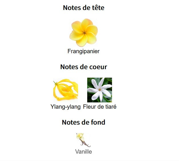 - Une fragrance florale exotique qui rappelle les îles et la chaleur du soleil
