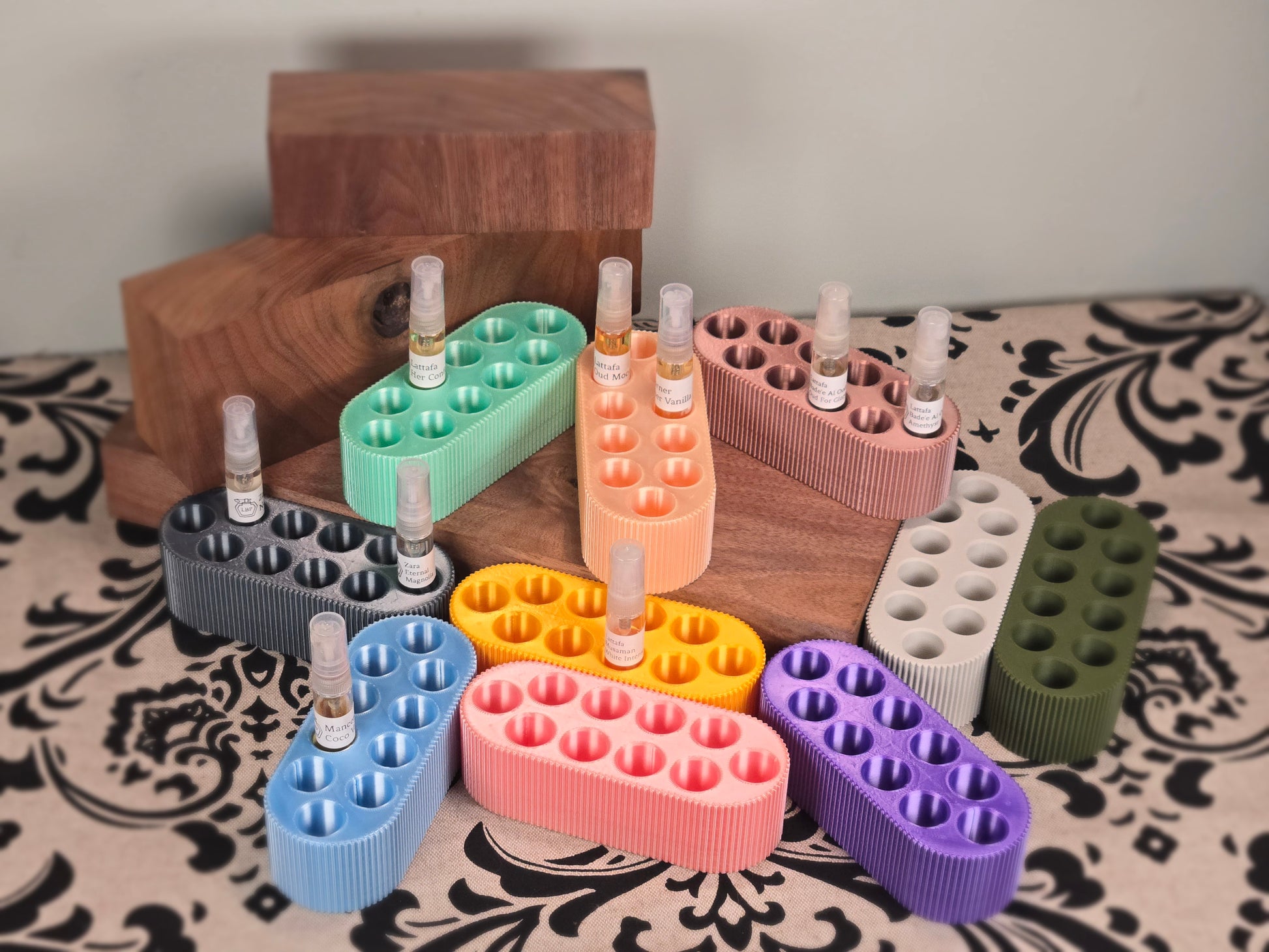 Découvrez notre organisateur d'échantillons, conçu pour vous aider à ranger et à afficher vos précieux échantillons 5 ml de manière élégante et pratique. Fabriqué avec l'imprimante 3D Bambu Lab A1, cet organisateur est disponible en quatre types de filaments et trente-cinq couleurs magnifiques pour s'adapter à tous les goûts et décors.