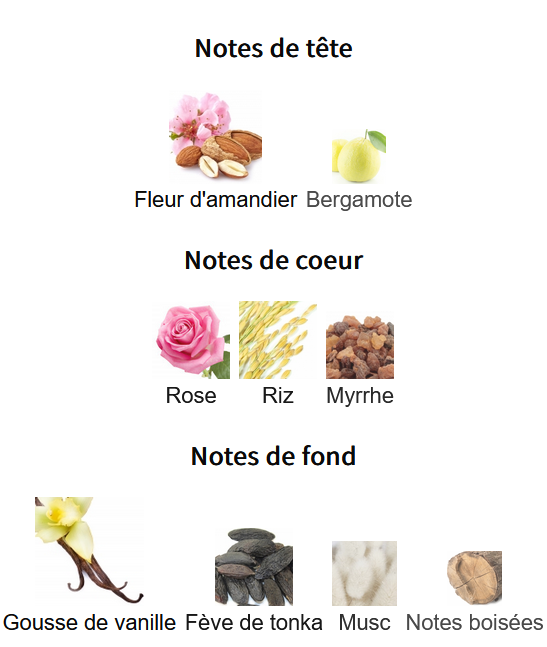 - Famille olfactive : Floral musqué avec une touche gourmande