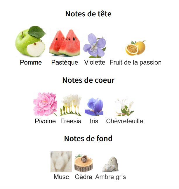 Ce parfum enchanteur combine des notes fruitées et florales avec une base douce et boisée, créant une fragrance à la fois féminine et sophistiquée. Il est idéal pour celles qui cherchent à ajouter une touche de fraîcheur et d'élégance à leur quotidien.